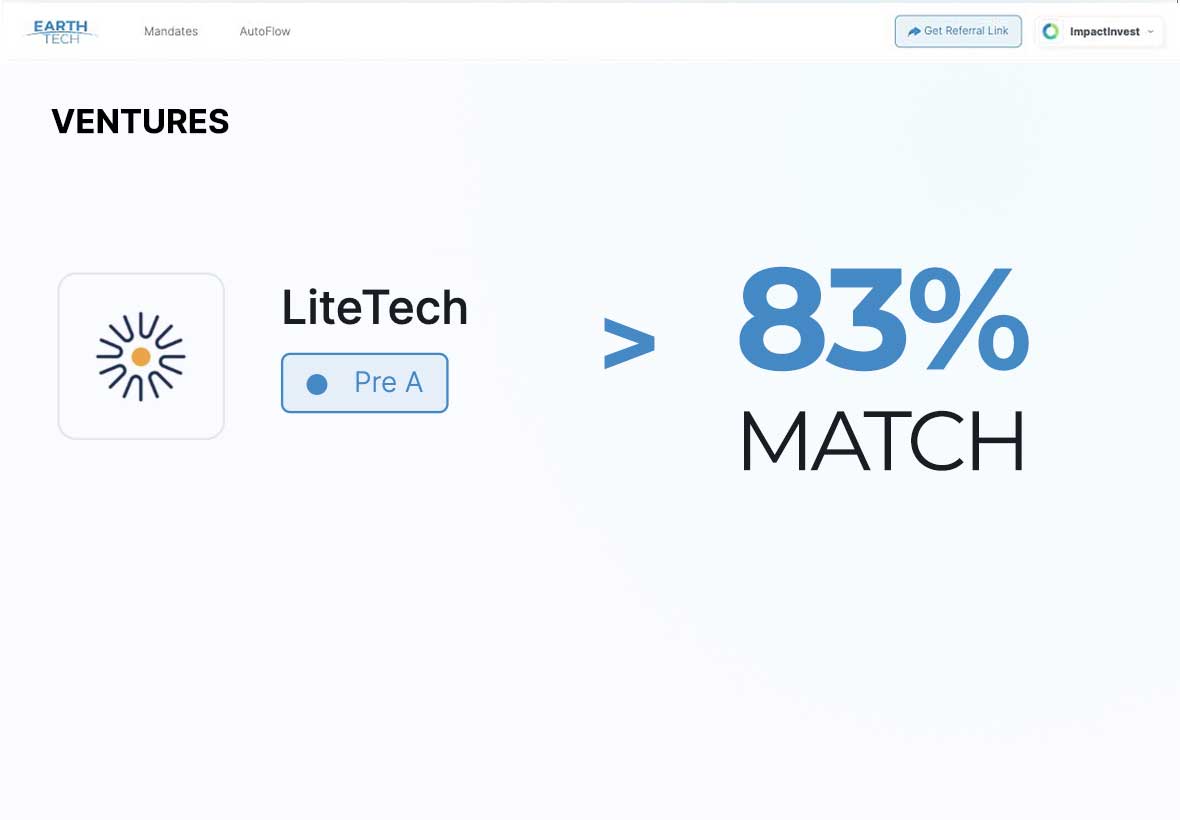 LiveMarket Enables you to be matched to aligned impact investors and innovation programs. This is the heart and soul of why EarthTech exists, to bring values- and stage-aligned ventures and investors together – for people and planet to prosper.